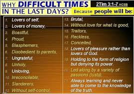 Good Evening Everyone!! How are you doing today? Fine, I hope. I have a very important question to ask all of you. Why People are behaving the way they are today? The answer to this question has been prophesized a very long time ago. I have to come to the realization that whenever I read 2nd Timothy, I have to understand that these are the things that are going on today.