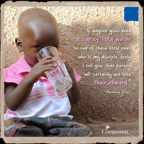 Praise the Lord Saints!! Praise the Lord!! How are you doing today? Fine, I hope. I would like to say that Matthew 10:42 says: If anyone gives even a cup of cold water to one of these little ones who is my disciple, truly I tell you, that person will certainly not lose their reward. This Bible verse talks about compassion. I am saying this because, it is the truth! Matthew 10:42 means that we all supposed to help those who are not able to help themselves.