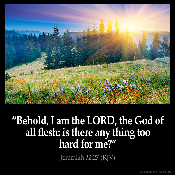 Is there anything too hard for God? The answer is no!! I want to inform all of you that it is mankind who makes things too hard for themselves. Jeremiah was asked by God whether anything was too hard for Him? The answer again is no. When it comes to people, we tend to complicate things all of the time.