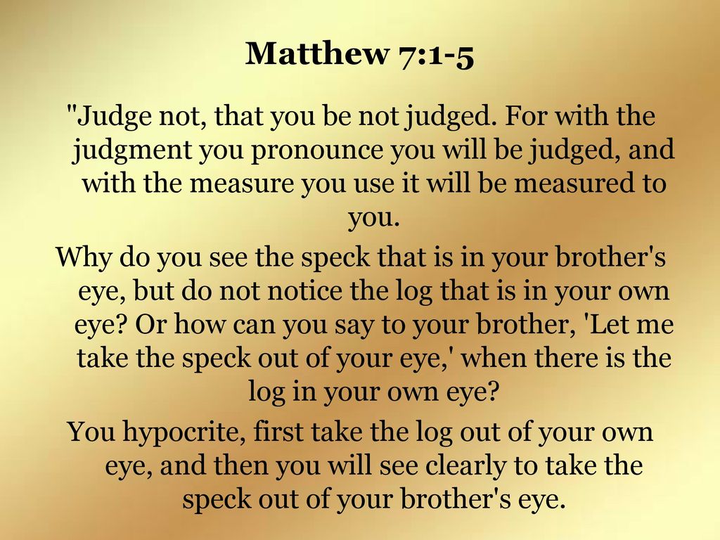 What Does it mean to have a log, speck, or beam inside of your eyes? First and foremost, we must remove the sin from our lives. Second, we cannot judge your brother. Only God is the righteous and just Judge. This has a lot to do with the sins inside of our lives. Frankly, it is better safe rather than sorry.