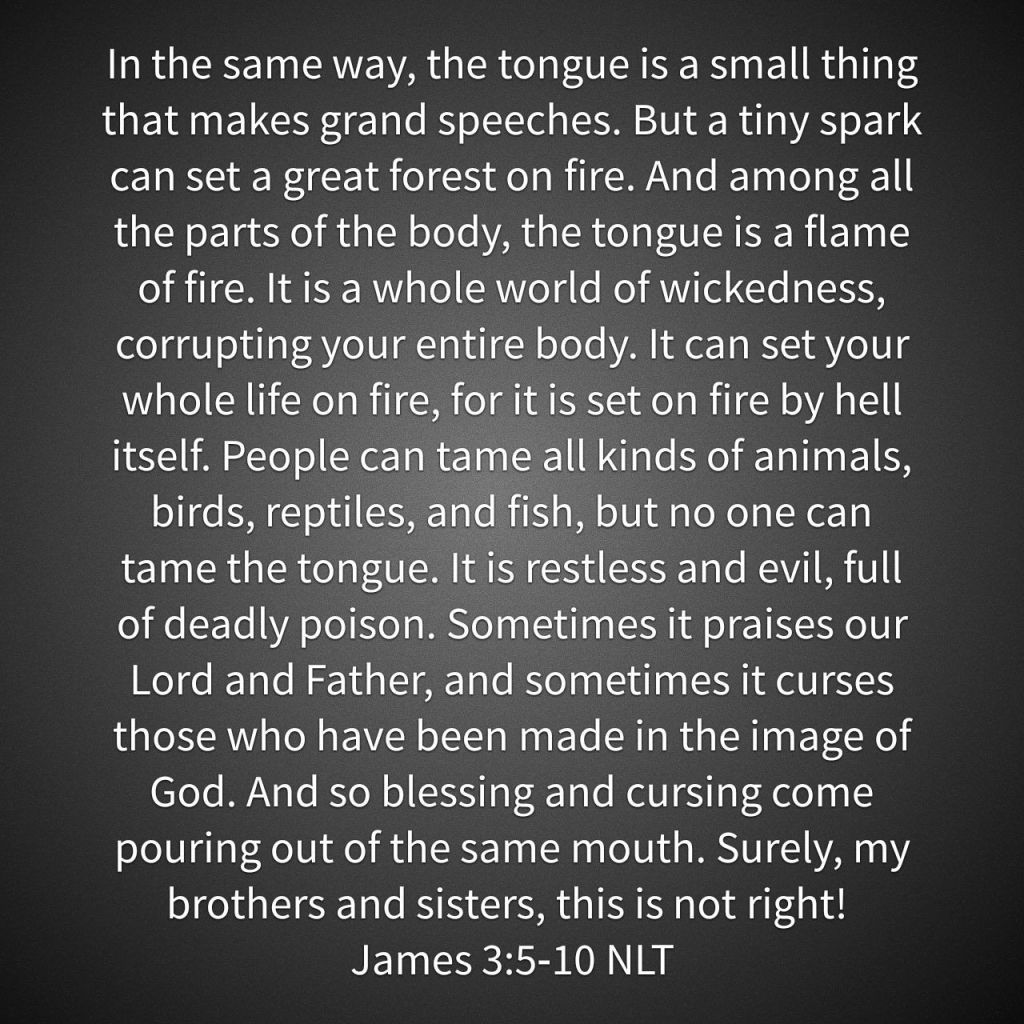 The tongue cannot become extinguished by any means. Blessings and cursing that comes out of the same mouth. This is not supposed to take place inside of the earth itself. However. I understand that living inside of Planet Earth is dangerous. In most cases, we are in peril right now as we speak.