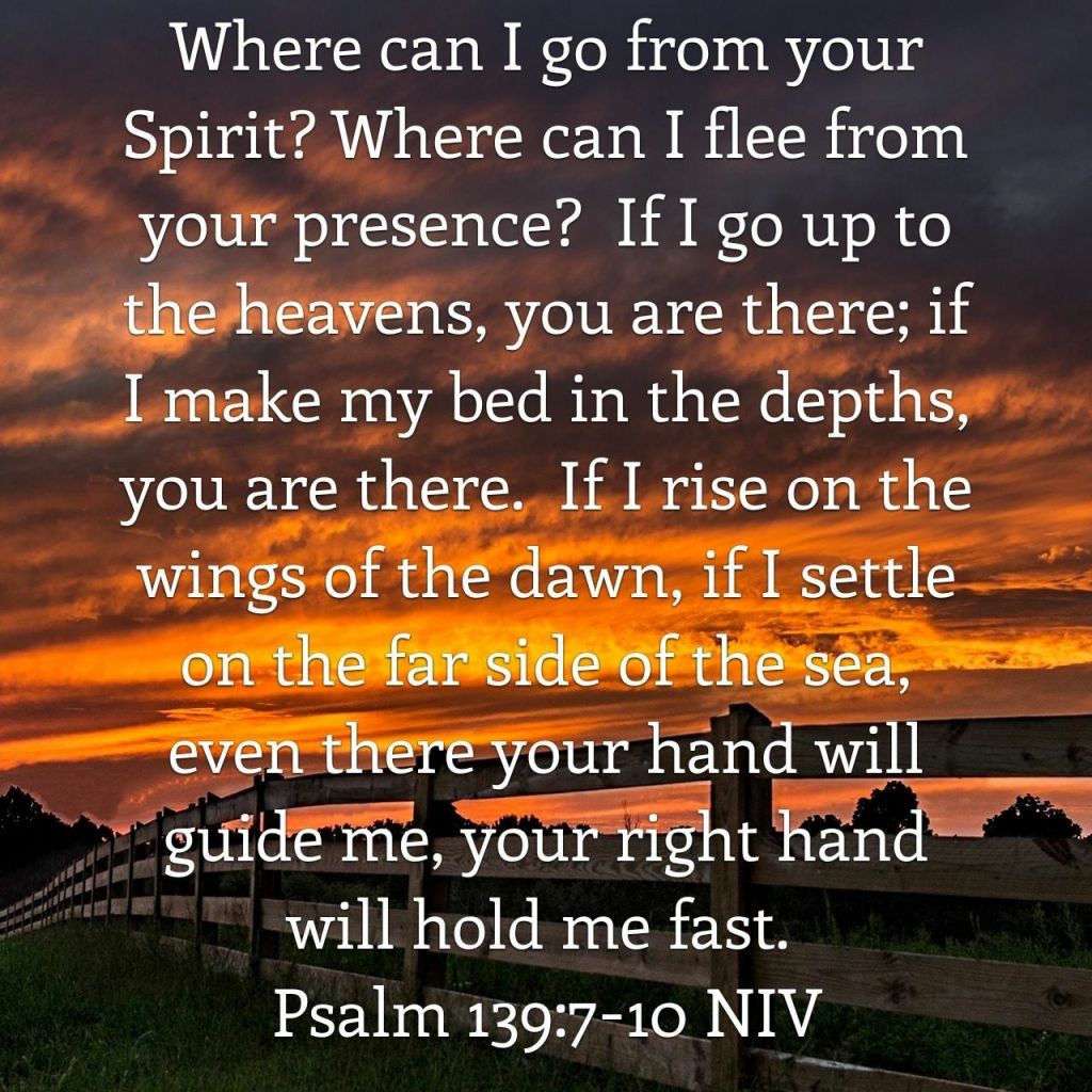 If I settle on the far side of the sea, even there your hand will guide me, your right hand will hold me fast. This is the truth when it comes to the Living God. God is with us at all times. Even when we do not think so. God is with us side by side. The Spirit of God dwells inside of us.
