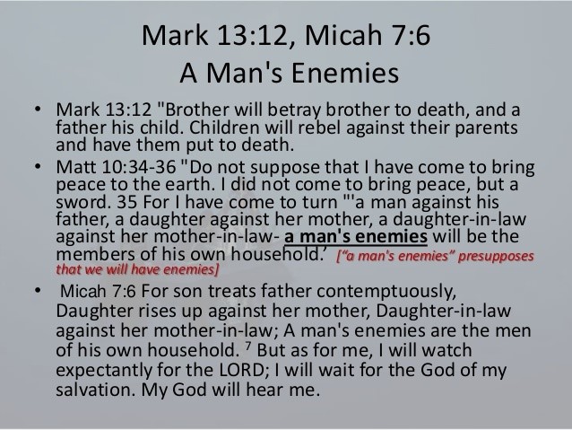 In Addition, I want to say that Mark 13th Chapter is a repeat of what Jesus Christ told His Disciples regarding the End of Times. There will be random acts of violence everywhere worldwide. Mark 13th Chapter is written differently. I get the impression that the audience that this is written for is different.