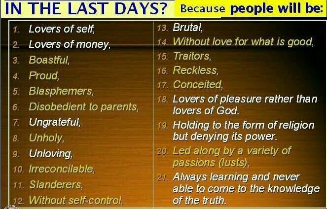 In Summary, I want to inform all of you that we are living inside of a changing society. I want to say that Jesus Presence is apparent to me and for everyone. In reference to the End Times and the Last Days, I have to watch and be very careful of people, places, and things.