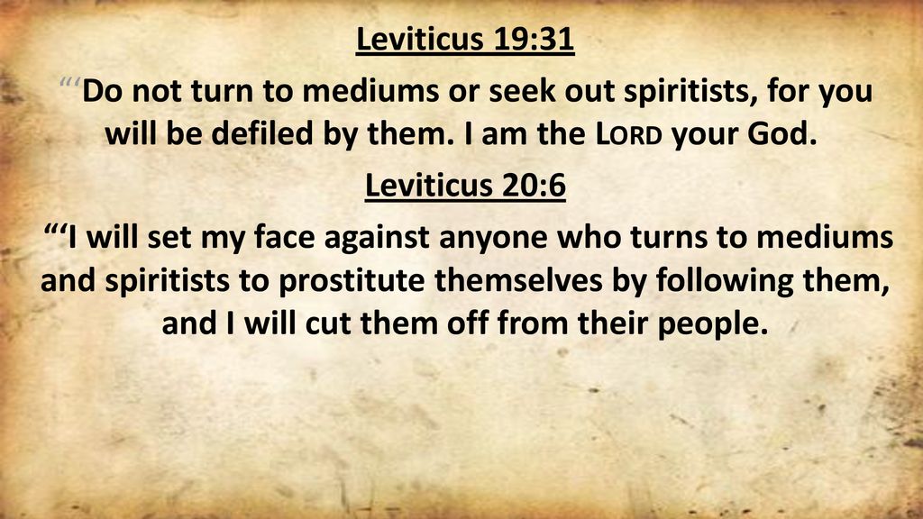 The Bible says in Leviticus that we are not supposed to turn to mediums or seek out spiritists, for you will be defiled by them. I am the Lord your God. This is very dangerous because it can prevent anyone from going to heaven someday. I remember consulting with psychics in the past, and they have given me false information. The psychic stated to me that I was involved with a relationship with two women at the same time.