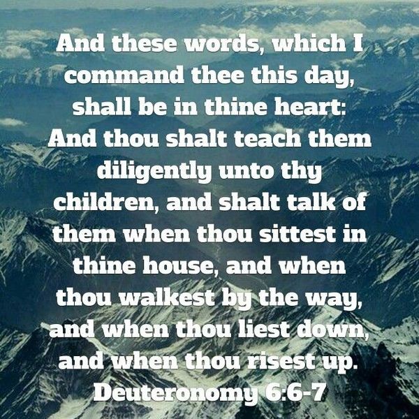 This also means that we are supposed to love the Lord with all of thy heart, soul, mind, and strength. When it comes to teaching our children about the Bible, they learn by watching their parents. If the parents are reading the Bible to their children, teaching their children how to pray, and taking them to church all of the time, and conducting themselves like a true Christian, then a child will never forget about the Lord. According to proverbs 22:6 says: Train up a child in the way he should go, and when he gets old, he will not depart from it.