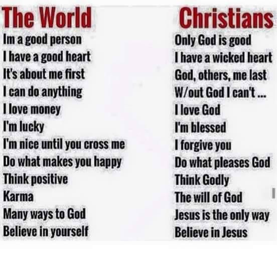 The World only have karma, many other Gods, and plenty of money to try to persuade you to join. The world will make you think that life is good without Jesus Christ. I want to inform everyone that when I was living inside of the world, I was easing God out of my life. I know that I still have a very long way to go when it comes to my journey in Christ Jesus. I love all of God’s creation. I want to say to everyone to please come to Jesus Christ because He is the way, truth, and the life.