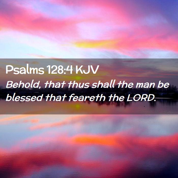 Psalms 128:4 says Behold, that this shall The Man be blessed that feareth the Lord. I want to start things off by saying that I am literally scared of God. I want to inform all of you that I love you very much. I love life, liberty, and the pursuit of happiness. I know that I am not perfect. I have been in the hospital having treatments for Glaucoma and Macular Degeration. I also had cataracts. I am very happy that I am feeling better now. This Bible verse is saying that everyone is blessed, if we are born again. This means that we must give up our old way of living. I feel good because I being a Born Again Christian.