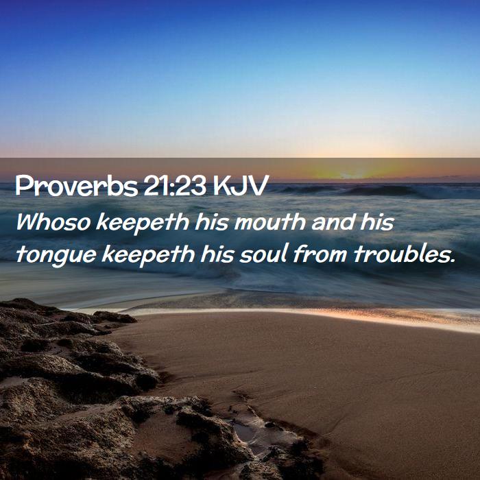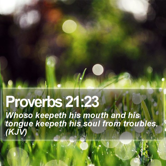 Whosoever Guard His Mouth and Tongue keeps His Soul from Troubles. This is the truth because my grandparents used to tell me this Bible verse to my face because I was always getting into trouble. I know that your own tongue cannot be tamed. The tongue is a consuming fire. I guess if someone loves you besides God, then you are blessed. My family members used to always keep me from going to jail or prison. This means that you need to keep your mouth shut. My mother worried about her children. She did not want any of us to get into trouble all of the time. My grandparents were the same way. They didn’t want us in jail or prison. The mouth is filled with poison.
