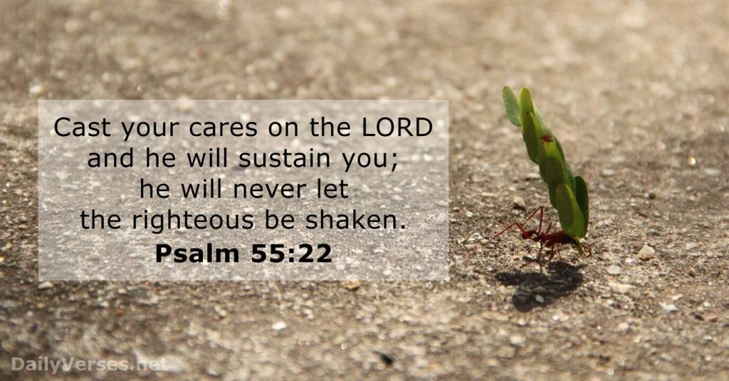 Psalms 55:22 Give your burdens to the Lord, and he will take care of you. This means that we must be willing and honest at the same time. My burdens consist of feeling very deeply depressed because I got fired from my job at UNCC. As soon as I lost my job, I felt very depressed because of my behavior. For example, I went home for a while. I went home to Dayton, Ohio for a total of 3 months. I have been helping my family members. My mother was a huge supporter for me. I know that everytime something happens bad to me, I have a tendency to run away from my problems. I tend to cry like a little child. If I am hurt emotionally and mentally, I tend to shut down completely. I do not like to argue with anyone anymore.