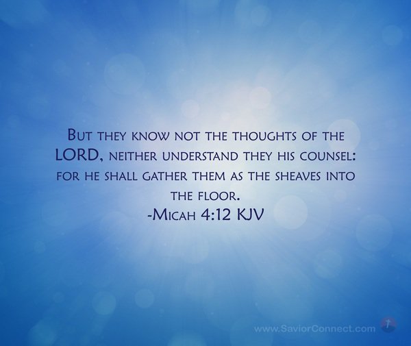 Micah 4:12 says: But they know not the thoughts of the Lord, neither understand His Counsel: For He shall gather them as sheaves into the floor. I am going to say that I don’t know the Thoughts of the Lord. I am only a vapor and a shadow that only last for a short period of time. Psalm 144:4 says: Man is like a breath, and his days are a passing shadow. I have to remember that God created us for a reason. We might not know what our true purpose is in life, but God has the answer and plan for all of us. I will admit that I didn’t know what my plan that God had for me. This is because I didn’t ask Him. Right now, I know what my purpose is right now for me. God would like for me to repent of all of my sins, iniquities, and transgressions. He wants me to share the Gospel of Peace with everyone. God also want me to be a leader and not a follower. I might not know what God is thinking about. I might not understand His ways. I have to be honest and truthful with everyone right now, by saying that I need help in this area of my life. God wants me to serve others and Him. I am serving Him by sharing my story with everyone who ask me.