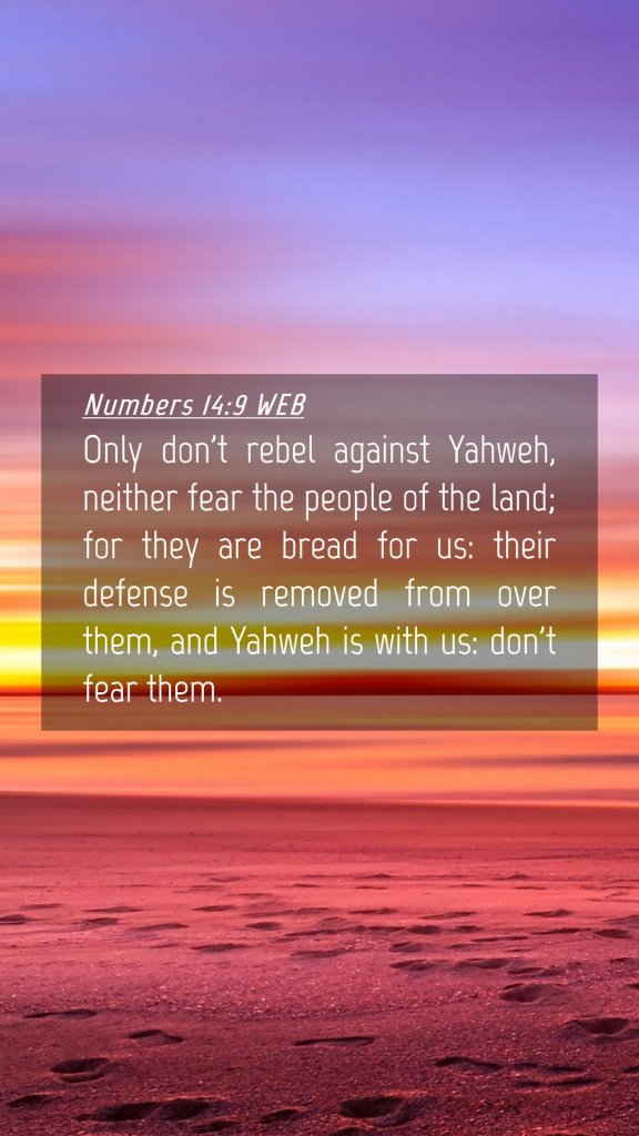 Numbers 14:9 says: Only don’t rebel against Yahweh, neither fear the people of the land; for they are bread for us: Their defense is removed from over them, and Yahweh is with us, don’t fear them. The Lord God is protecting all of us, who enters the Land, which the Lord has bless us. Always be careful and strong because God will protect us wherever we go. I am not supposed to fear the people of the Land. This is because their defenses have been removed from them. Of I go somewhere, I am supposed to stand my ground against anything that is in my way. I really understand that God has blessed us with a land that is filled with milk and honey 🍯. I really recite the Bible verse from 2nd Timothy 1:7, and it says that for God has not given us a Spirit of fear, but of love, power, and of a sound mind. This is very serious because God is protecting all of us wherever we go. God is real!! He is always available anytime we need Him. When I think of the Word of God, I know that it is my Sword of The Spirit. I am supposed to protect myself against the devil’s schemes. I will never disrespect God or other people in my life. Lord God, please give me strength.