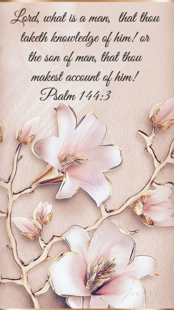 Lord, what is man, that You take knowledge of him? Or the son of man that you are mindful of him? Man is like a breath; his days are like a passing shadow. Lord God Almighty God, I want to thank you for taking notice of me. I know that I am not the son of man. You are mindful of everyone who exist on Earth. I am very thankful for the air that I breathe each day of my life. Lord God, I want to say thank you for giving me life. Thank you for knowing me for the person that I am. God, what do you want me to do? I’m ready to serve You Lord God. I love you Lord!! I love Your Creation.
