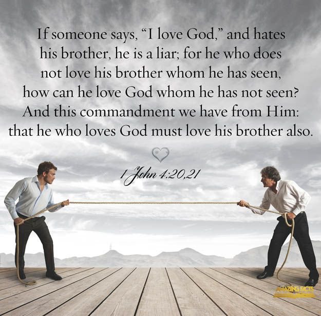 If anyone says I love God, but hates his brother, he is a liar. For anyone who does not love his brother, who he has seen, cannot love God, whom he has not seen. Whoever loves God must also love his brother.