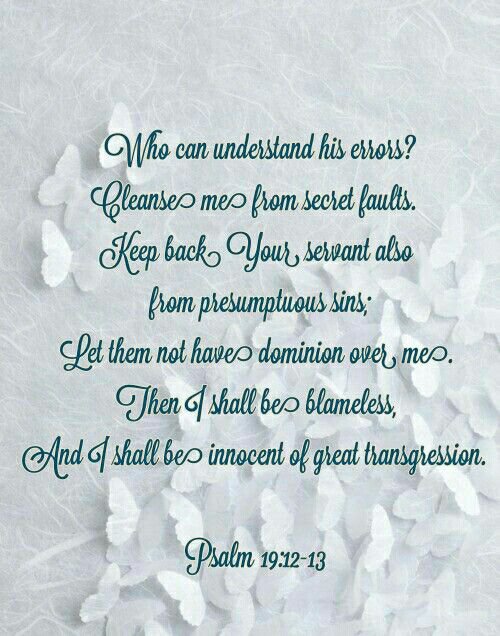 I am not able to understand my own errors. Cleanse me of all of my secret faults. I am a person who makes mistakes all of the time. I am a 58 years old now. My life right now can be better than it’s right now.