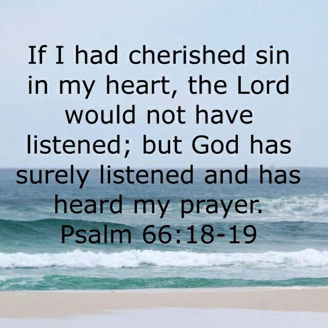 Psalm 66:18 says: If I regard iniquity in my heart, the Lord will not hear me. This means that if I have anger and sin in my heart, God will not hear me. I will admit that I am bearing a resentment towards my sister. I remember the last time we argued, she called the police on me. That really hurt me personally. I love all of my family members and friends. I really don’t like Law Enforcement. My family members are quick to call the police on me. Lord Jesus, please give me to say to my family.