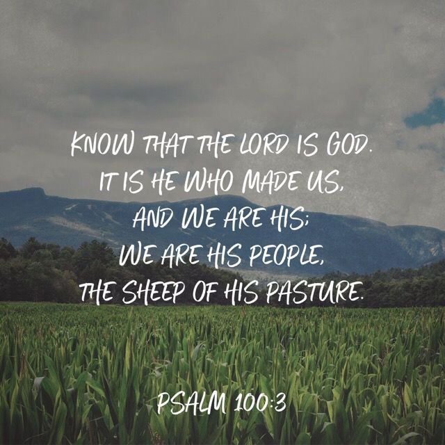 Psalms 100:3 says: Know ye that the Lord he is God: it is he that hath made us, and not we ourselves; we are his people, and the sheep of his pasture. This means that the Lord God wants us to recognize him. He is God, and he has made us. To fully understand this, we have to go to Psalms 139:15 says: My frame was not hidden for You, when I was made in secret, and skillfully wrought in the lowest parts of the earth. You have made us, and not we ourselves. Jeremiah 1:5 says: Before I formed you in the womb, I knew you, before you were born I sanctified you and I ordained you as a Prophet to the Nations. The Lord God knew us while we were inside of our mothers womb. He named us, and He knows us as well as how long we are going to live.