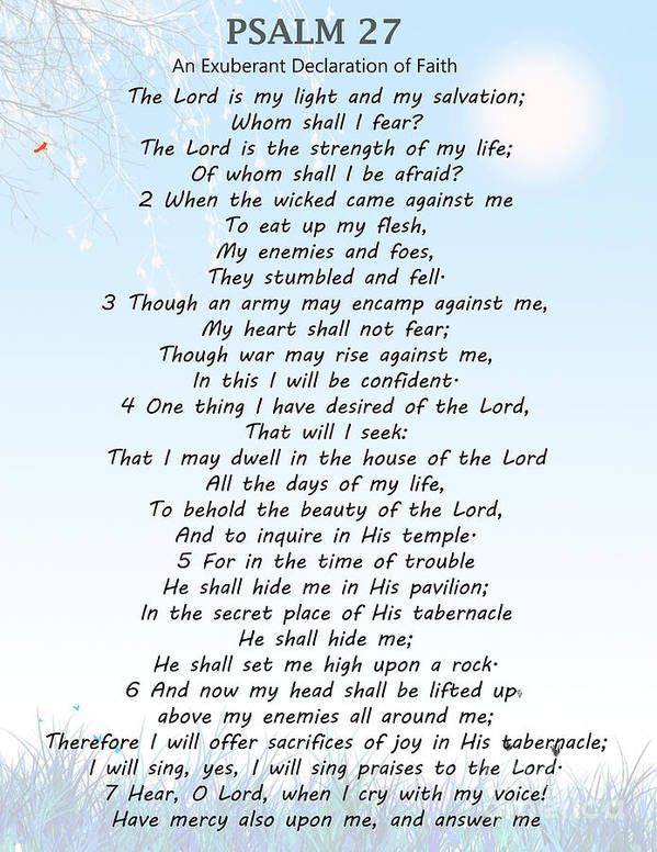 Psalm 27 Meaning is very important to me and everyone else. The Lord is My Light and My Salvation whom shall I fear. The Lord is The strength of my life to whom shall I be afraid. Whenever I think of Psalm 27, I get the impression that God is talking directly to me. I am a person who is 58 years old now. I have been feeling guilty of myself as of late. I want to be honest by saying that God is saying to me that I will protect you and show you my Salvation. My salvation is my personal life that I am spending with The Lord God. God protects us from evil. God is already pleased with me. Lord God, do You still love me? Whenever my enemies approach me to confront me, it is You Lord God who is fighting all of my battles for me. A faith sharing experience is an opportunity for me to release all of my negative emotions and feelings. Lord God, I am very sorry for committing all of my sins, iniquities, and transgressions. It is Your Voice that I hear each day of the week. I used to hear voices that are not benevolent. I hear Your Voice through Your Sword of the Spirit which is the Word of God. I also hear Your Voice while I am sleeping in my bed.