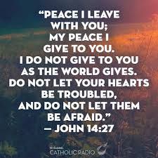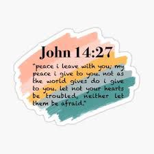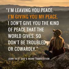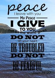 Peace I leave with you, My peace I gives to you; not as the world gives do I give to you ; Let not your hearts be troubled, neither let them be afraid. This means that Jesus Christ is responsible for giving us true peace and not as the world gives to you. Let not your hearts be troubled. This means that we should not worry and become stressful over needful things. I know that for me Jesus Christ is responsible for giving me the right peace that I am talking about. I will admit that I used to cry out and be stressful over small things and not of matters of the heart.