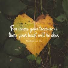 For Where Your Treasure is There Your Heart Will be Also. What does this Bible verse mean? It means that your heart determines where you should go. Where is your treasure is right now? Treasure is like your possessions and or desires that you have for yourself. I know that my mind is on achieving for God. How do you achieve the things for God? The first thing you are supposed to do is share the Gospel of Peace with everyone. No matter how you feel, you are supposed to be pleasing in the eyes of the Lord. Before you talk to another person about God, you are supposed to ask God to change your attitude. What is an attitude? An attitude is a state of mind or a particular feeling. A treasure is a valuable possession. The Bible says that a treasure is desires that someone may have about numerous of things. Treasure is also how we define ourselves while we are in the presence of God. Treasure is how we feel about ourselves. I love the Lord God because I am very happy to be a Child of the Most High God. I tell everyone that I love them for the person that they are. My heart has a lot to do with my feelings on a subject or how I feel about myself.