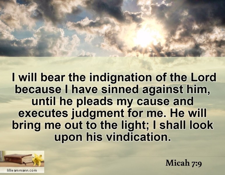 I sincerely understand that God is giving all of us a second chance at life. I know that man is not supposed to quarrel or argue with God in the first place. Man is very sinful. Man, questions everything that he does wrong because he is afraid and terrified of God’s wrath. When it comes to Micah 7:9, it specifically talks about God’s wrath on the wicked.