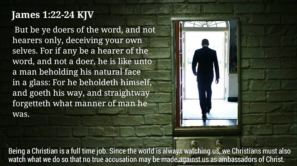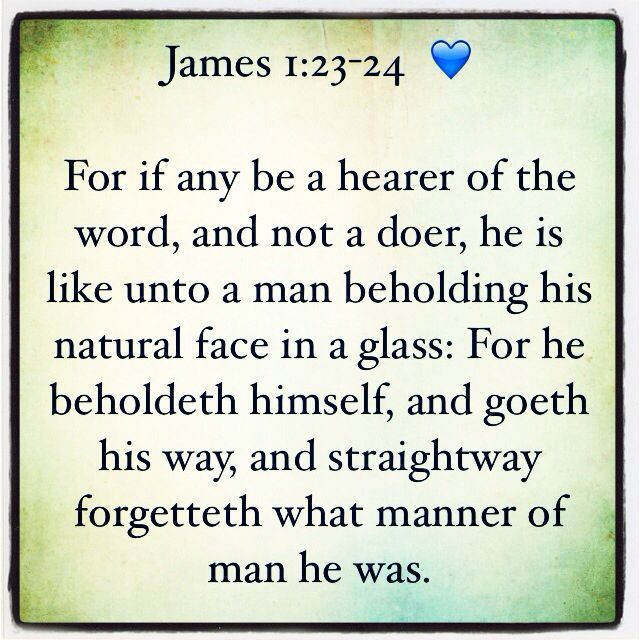 “Therefore lay aside all filthiness and overflow of wickedness, and receive with meekness the implanted word, which is able to save your souls. But be doers of the word, and not hearers only, deceiving yourselves. For if anyone is a hearer of the word and not a doer, he is like a man observing his natural face in a mirror; for he observes himself, goes away, and immediately forgets what kind of man he was. But he who looks into the perfect law of liberty and continues in it, and is not a forgetful hearer but a doer of the work, this one will be blessed in what he does.”